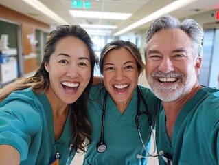 Asian healthcare professionals engaged in a conversation and smiling in the hospital corridor showcasing the importance of teamwork and communication in healthcare settings