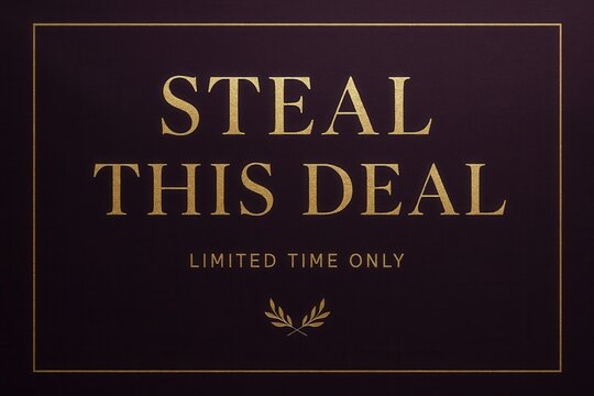 Elegant banner featuring STEAL THIS DEAL and LIMITED TIME ONLY offer, luxurious glossy style, enticing retail discount promotion.