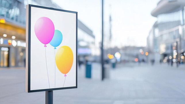 A digital banner display in a shopping mall featuring vibrant visuals promoting a grand opening sale, enticing shoppers with colorful graphics and discounts