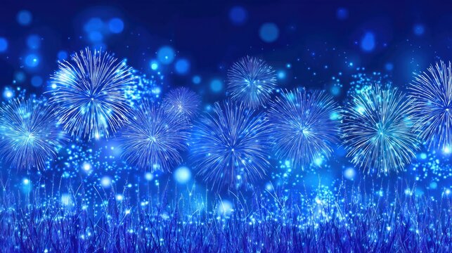 Blue Fireworks Display Over Grass Field