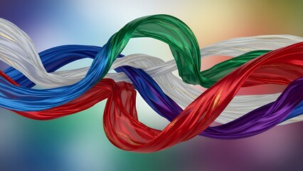Vibrant silky ribbons intertwined in a colorful abstract background