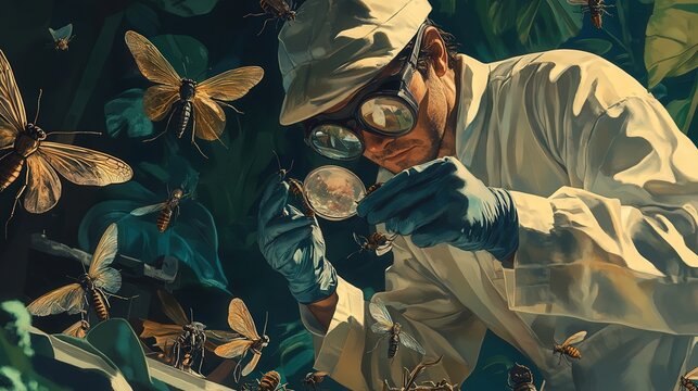 Illustration of entomologist working. Generative AI.