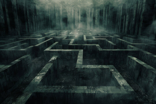 The concept of being lost in a labyrinthine nightmare, focusing on winding paths that lead nowhere and the feeling of entrapment - Generative AI