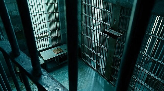 close-up shot of prison bars with clear copy space between them, emphasizing the sense of entrapment and the yearning for freedom. struggle for freedom.