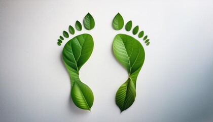Green leaves footprints spreading the message of save the earth on a white canvas for environmental awareness campaign