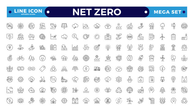 Net zero nature Outline icon natural environment Carbon neutral and net zero concept greenhouse gas emissions Green energy, CO2 neutral, gas emissions, climate, ecology. Editable stroke outline icon.