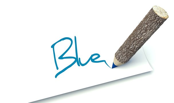 Blue concept, ecology wooden pencil tree trunk