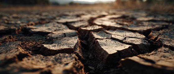 Global Warming: A parched landscape, reflecting the impact of climate change with cracked earth, depicts the severity of environmental degradation and the urgency for action