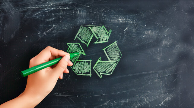 Professionals in an office meeting room presenting and collaborating on sustainable business strategies, with eco-symbols indicating the company's commitment to environmental responsibility.