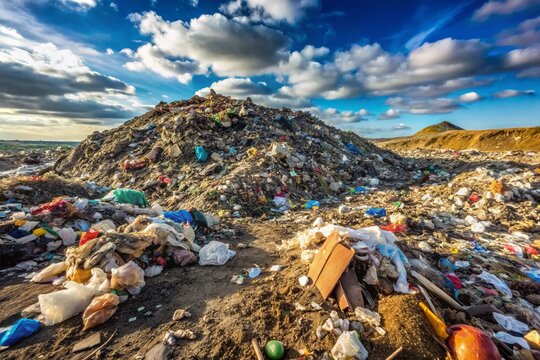 Landfill Waste Piles Under Clear Blue Sky - Afternoon Sun Environmental Pollution Photography