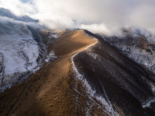 Majestic Mountain Peak Under Cloudy Sky - Kazbegi Mountains