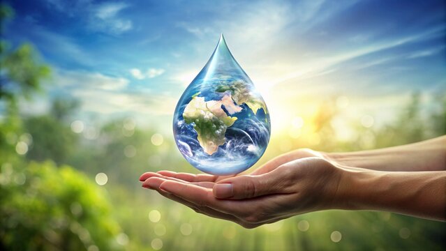 Hand Hold Water Drop With Earth