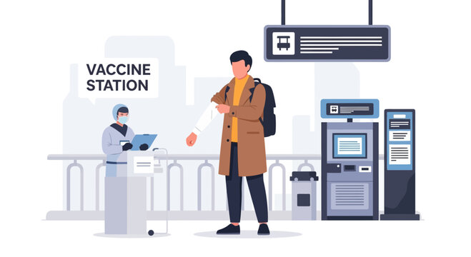 Preparing Arm for Vaccination at Modern Public Transportation Hub