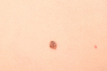 Small mole nevus on human skin, carcinoma. Background, macro