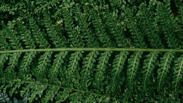 Zoomed-in photograph of the fresh green leaf of the bird's nest fern (Asplenium nidus), an epiphytic species belonging to the Aspleniaceae family and locally termed kadaka.