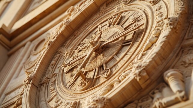Intricate Carved Clock on Architectural Facade