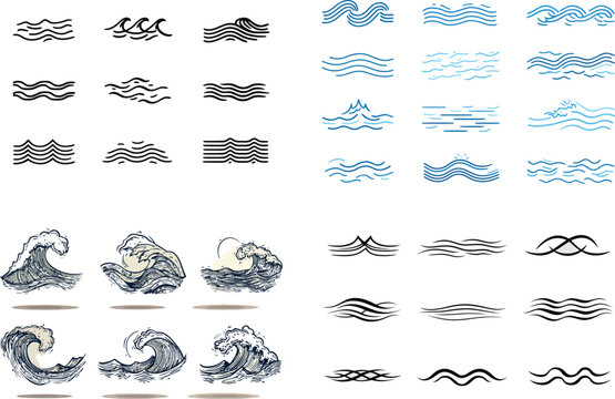 Ocean waves collection in various styles eps