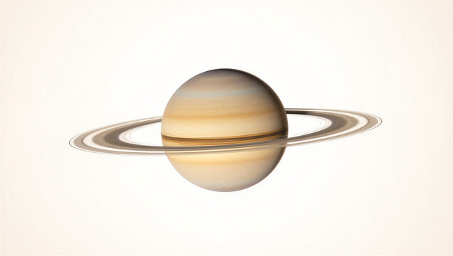 A striking 3d render of the ringed planet saturn against a clean white background, featuring its prominent golden brown hues and iconic ring system