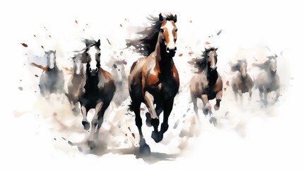 Generative AI, Unbridled Freedom: Watercolor Drawing of a Herd of Wild Horses