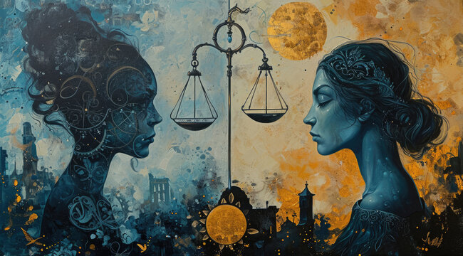 Celestial Balance, featuring an abstract sun and moon on opposite ends of the poster, connected by a glowing equinox line, with copy space, The September Equinox