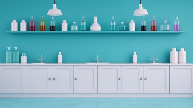 Capture the clinical environment of a modern medical laboratory in detailed illustrations, highlighting equipment and procedures. Illustration, Image, , Minimalism,