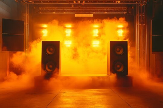 Concert Stage: Dramatic Amber Lighting and Powerful Speakers
