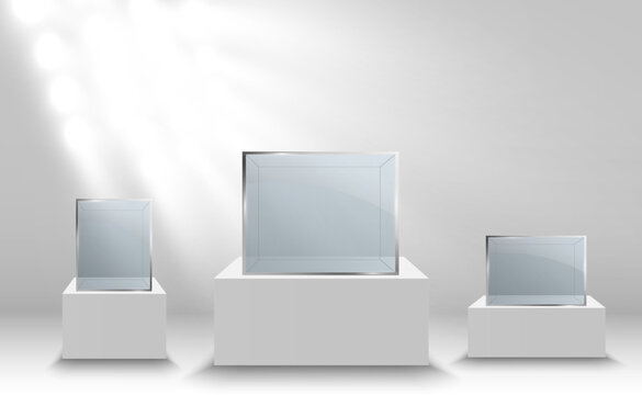 Refrigerator empty. Supermarket retail equipment vector realistic refrigerators for store. Refrigerator for retail or supermarket, showcase for cafe illustration