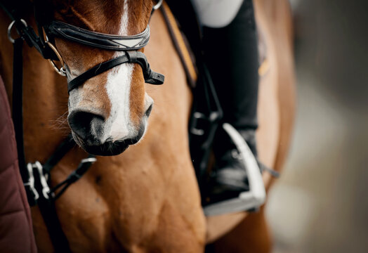 A rider on a horse performs in the discipline of working  equitation, demonstrates an element of side pass