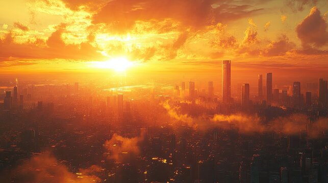 Bright sunrise over a cityscape, representing the dawn of a new era