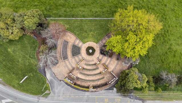 Aerial view of the Lord Rutherford memorial, Brightwater, Tasman Region, New Zealand.
