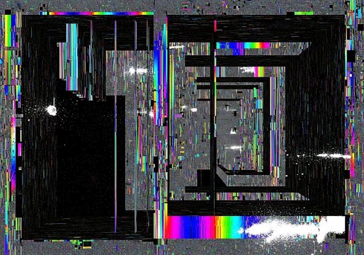 Abstract digital glitch art with fragmented colorful pixels and white noise patterns image