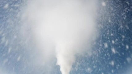 geyser. A powerful geyser erupting skyward, water droplets against blue sky, motion blur. ESG reports, sustainability campaigns, designed for environmental awareness campaigns.