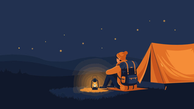 Adventures Underneath A Starry Sky A Lone Hiker Enjoys Camping