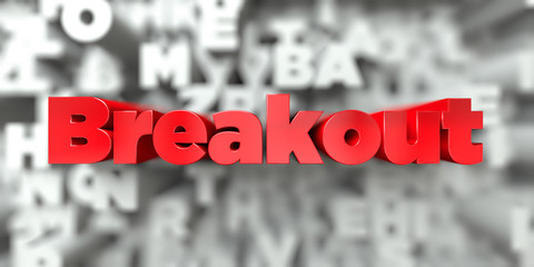 Breakout -  Red text on typography background - 3D rendered royalty free stock image. This image can be used for an online website banner ad or a print postcard.