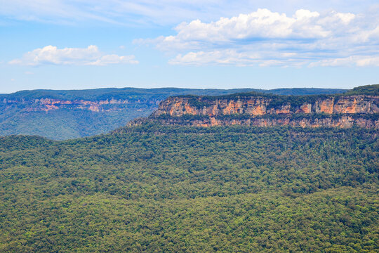 Southern escarpment of the Jamison Valley as seen from the Three Sisters in the Blue Mountains National Park, New South Wales, Australia
