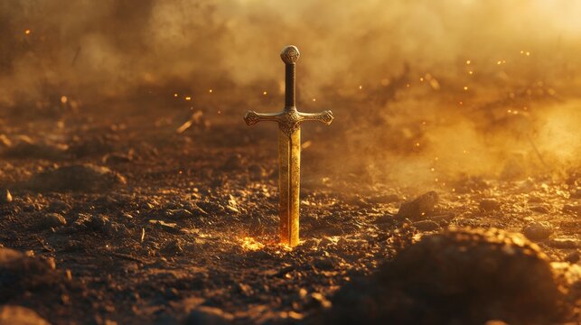 golden sword buried in the ground
