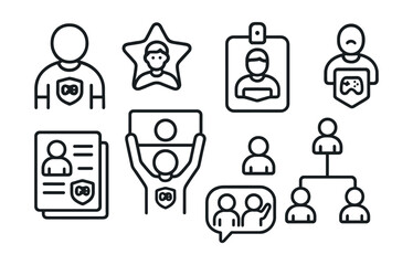 Gaming PC icon set. Minimal vector icons pack. Inclues keyboard, laptop, CPU, eadset, monitor, microphon, GPU, fan and more. Editale stroke.