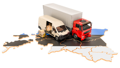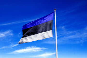 Estonia national flag cloth fabric waving on beautiful grey sky.
