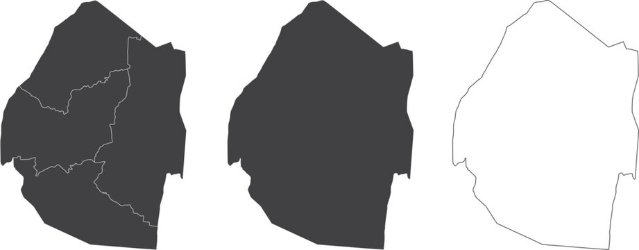 Eswatini Map. Swaziland Country Map. Emaswati Liswati Black and White National Nation Outline Geography Border Boundary Shape Territory Vector Illustration on white background
