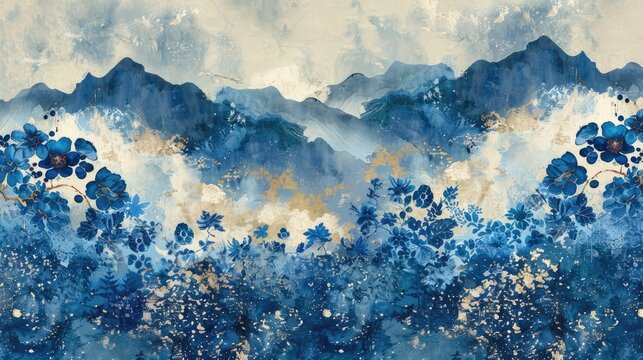 floral blue design inspired by atmospheric woodland imagery, featuring intricate nature-inspired patterns in royal blue hues.