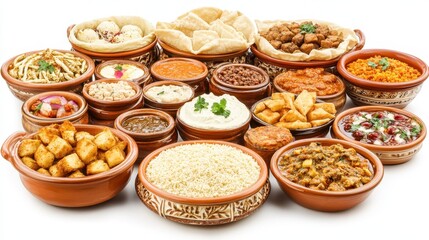An array of diverse ethnic vegan dishes on a white surface