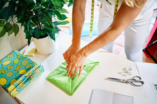 Young Business Woman Packing Vintage Clothes