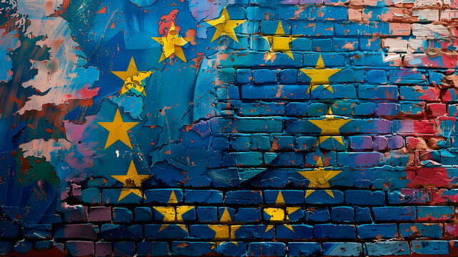 European Union flag rendered as a digital wave with glowing yellow stars on a blue surface symbolizing technology and unity