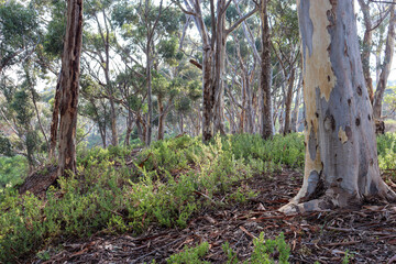 Beautiful pink and white flowering gum trees in Victoria Australia with bees hovering