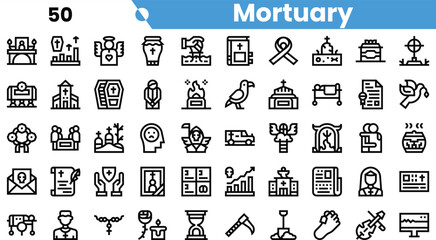 A collection of minimalist icons representing mortuary services, including caskets, memorials, and ceremonial symbols.