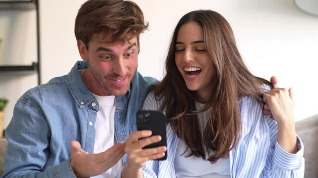 Smiling woman raise hands celebrate success or promotion. Happy female feel euphoric with win or victory. Vector illustration.