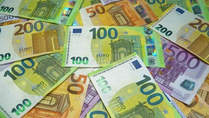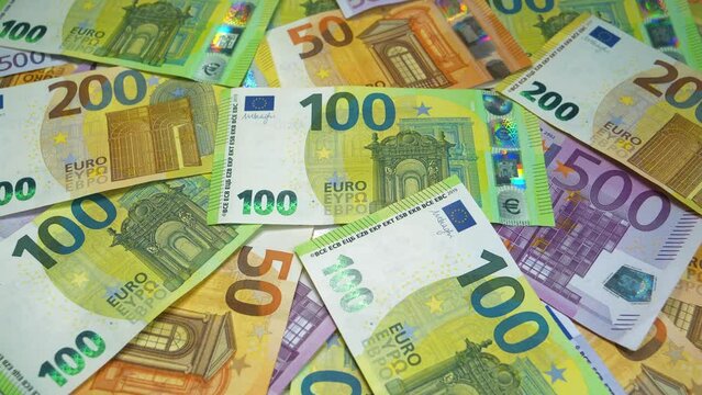 Banknotes 500, 200, 100 and 50 Euro. Euro banknotes of various denominations. Real euro money of various colors and nominals