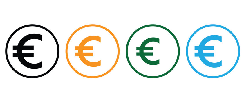 “Euro Currency Symbol Icon Set – Colorful Vector Design of Euro Signs in Circles for Finance, Banking, Money, Economy, and Business Graphic Illustrations”