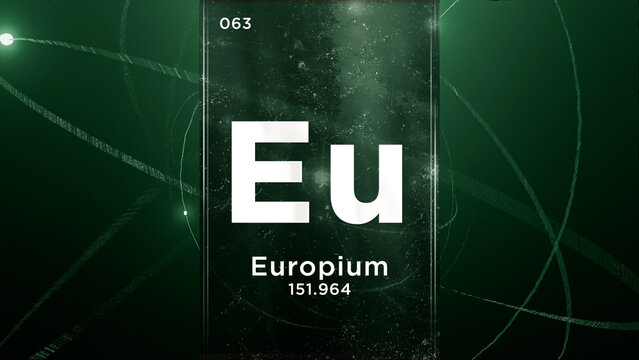 Europium (Eu) symbol chemical element of the periodic table, 3D animation on atom design background