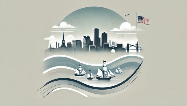 Delicate watercolor painting of a patriotic flag and minutemen silhouettes, loose brushstrokes, soft edges, historical symbolism, evacuation day theme, isolated on white background
